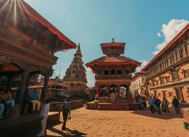 早餐后前往帕坦杜巴廣場,廣場呈長方形,東邊是皇宮,塔萊珠女神廟、金廟、曼嘉噴水池等,西 邊則是造型各異的廟宇,其中最為著名的是黑天神廟、黑天寺、哈里桑卡神廟、毗濕奴神廟、 毗斯瓦納特神廟等。其建筑藝術(shù)也非常高超、精湛,在世界建筑史上占有一席之地,被稱為 "露天的博物館"。游覽始建于 2000 多年前的世界上最輝煌的佛教寺廟“斯旺那布廟”(Swayambhunath 世界文化遺產(chǎn),俗稱“猴山”) 【約 1.5 小時】,來這里祭祀 的有尼佤爾尼姑、藏族喇嘛、佛教及印度教之貴族朝圣者,也許斯旺那布塔是觀察尼泊爾各個宗教融洽相 處的最佳地方。整體建筑古樸,味道十分濃郁,民房的窗飾極其繁復(fù),寺廟建筑的細部一樣精細。寺廟、 佛塔、銅飾等組合在一起,再加上成群的鴿子飛來飛去,成群的猴子蹦來蹦去,形成獨特的景觀。游覽始建于 13、14 世紀的巴德崗杜巴廣場(Bhaktapur Durbar Square 世界文化遺產(chǎn))【約 2 小時】:55 窗宮(The Palace of 55 windows)、 巴特薩拉女神廟(Batsala Devi)、尼亞塔波拉塔(Nyatapola Temple)等。這里可以選購著名的巴德崗木雕工藝品和陶制品。十五世紀以后,巴德崗杜巴廣場是巴德崗的城市核心,這里有長達500 年馬拉王朝的王宮,包括許多各具藝術(shù)特色的宮殿、庭院、寺廟、雕像等,被譽為“中世紀尼泊爾藝術(shù)的精華和寶庫”,素有“露天博物院”之稱,展現(xiàn)出一幅中世紀尼泊爾的瑰麗圖畫。后前往加都以東 30 公里的美麗的尼瓦爾人村莊納加闊特(海拔:2000 米)。這里以壯美的喜馬拉雅雪山日出、日落而聞名,是著名的喜馬拉雅觀景臺。因為這里是加德 滿都山谷觀賞喜瑪拉雅山脈視角最廣且最佳的地方。在這里觀賞喜瑪拉雅雪山全景,喜馬拉 雅雪山就像一條玉帶橫掛在空中。如果能見度高,還能看到世界第一高峰-珠穆朗瑪峰。這 里正對著喜瑪拉雅山脈的二十多座 6000 米以上、包括珠珠穆朗瑪峰、雅安納普爾納山峰、 岡底斯圣山等世界著名雪峰的連綿山丘。(在此可以看到十座世界最高山峰中的五座)。傍晚在納加闊特度假 村內(nèi)用晚餐,品餐觀景,是有多么的愜意舒適!