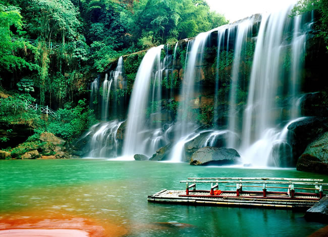 早晨綿陽出發(fā),沿三臺、射洪或者成都到赤水高速,經(jīng)車城資陽、甜城內(nèi)江、酒城瀘州,經(jīng)亞洲最大高低拉掛橋—黃艤長江大橋,抵達赤水,午餐后前往游覽“中國·赤水丹霞”世界自然遺產(chǎn)地核心景區(qū)——【四洞溝風(fēng)景區(qū)】(門票已含,游覽時間不少于2小時),“小家碧玉、萬竹之國”,觀賞水簾洞、月亮潭、飛蛙瀑、白龍?zhí)端淖沱惎B瀑,體驗茂林修竹雅韻,旖旎風(fēng)光。游覽后乘車前往【丙安古鎮(zhèn)】(自費游覽40元/人,門票+交通車費+服務(wù)費),建于赤水河畔陡峭的危巖之上,三面環(huán)水,依山而建木制懸空吊腳樓。后乘車返回。晚上可自費觀看笑動赤水晚會120元/人,或酒店休息。